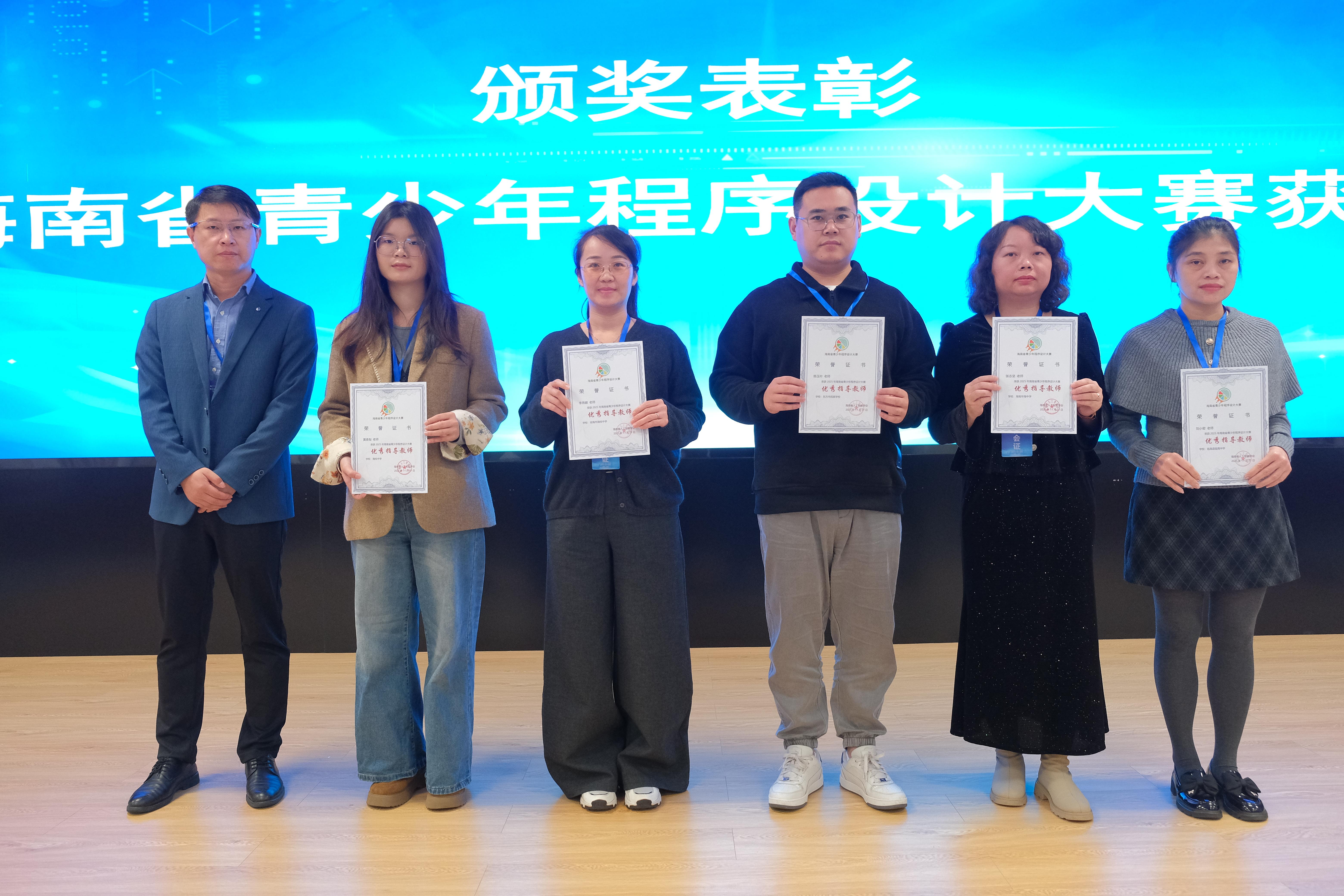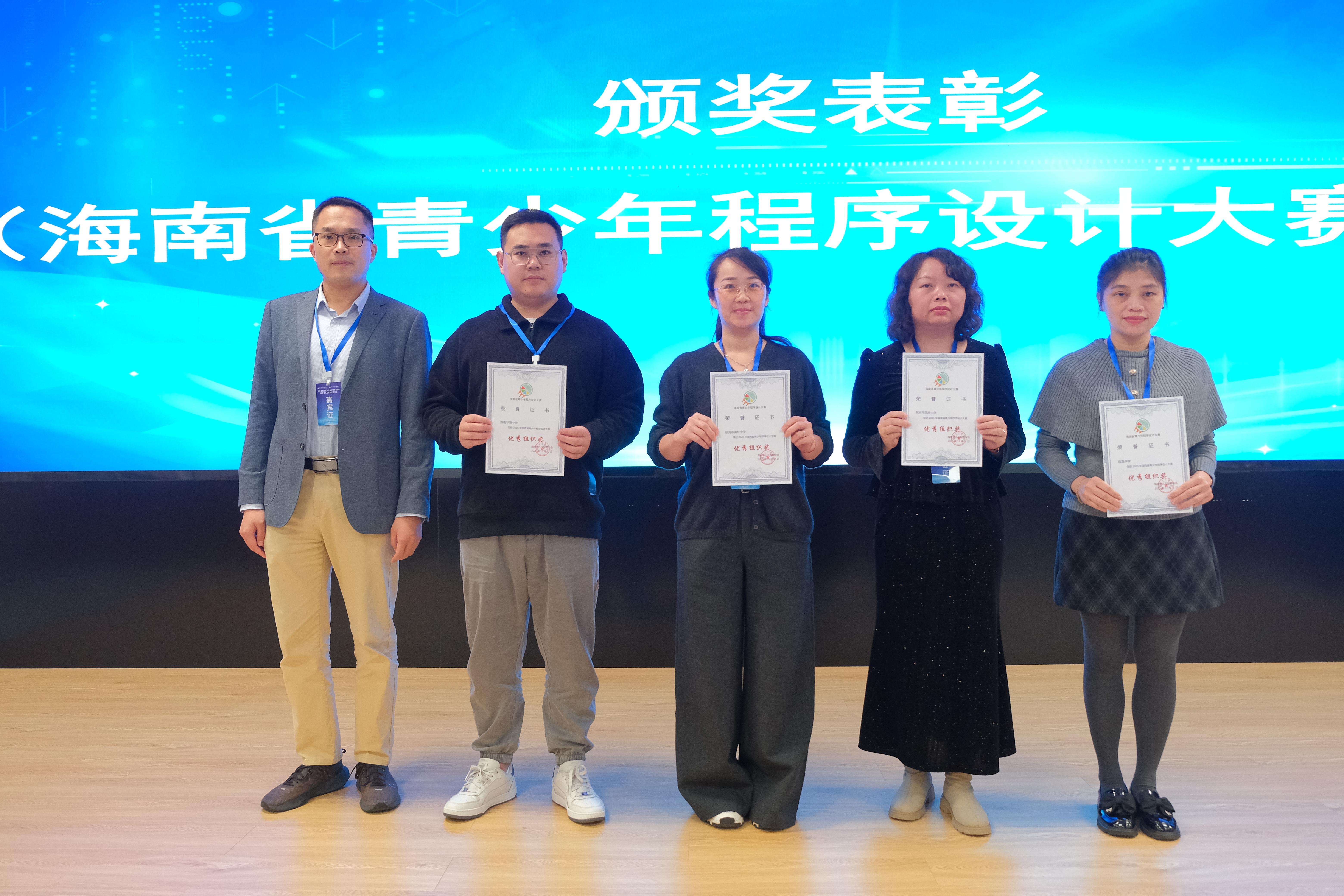 接下来,对在海南省青少年程序设计大赛中荣获优秀组织奖和优秀指导老师称号的单位和个人进行颁奖。
