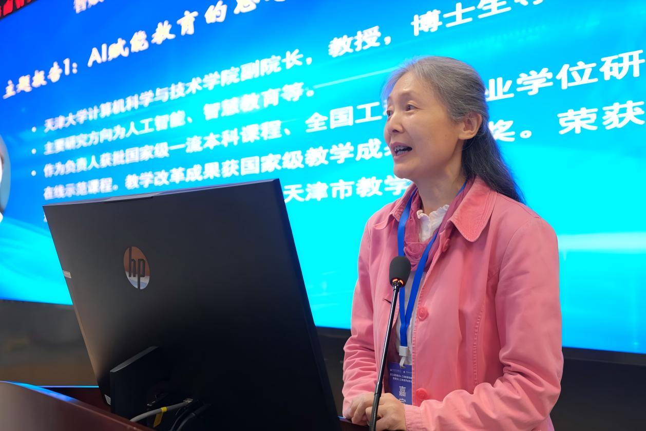 随后,天津大学喻梅教授做题为“AI赋能教育的思考与实践”的主题报告,解析AI赋能教育的发展趋势与高校实践,探讨人机协同教学新模式。